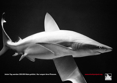 Als Vorlage wurde ein Motiv der neuen SHARKPROJECT-Kampagne genommen, das einen Hai auf einem Messer aufgespießt zeigt. Dieser Hai, als Symbol für alle bedrohten Meerestiere, wurde Grundlage für ein spektakuläres Unterwasserdenkmal.